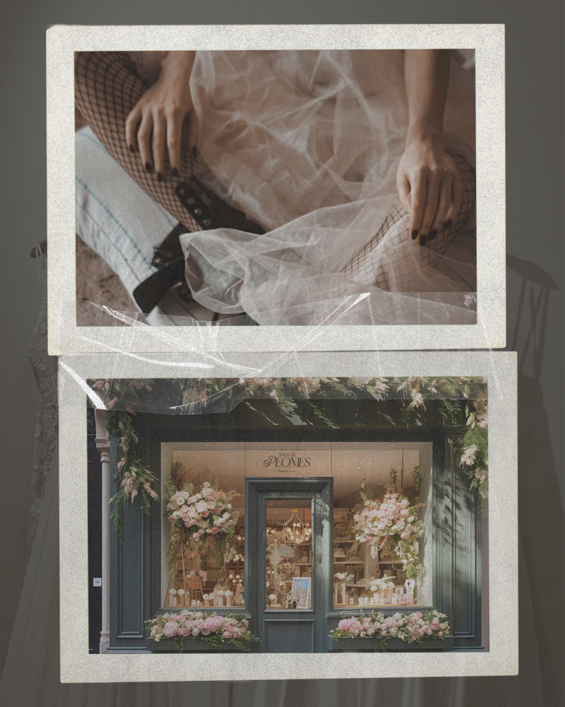 A delicate yet grounded combination of soft blush, deep burgundy, creamy ivory, and rich Parisian black reflects the brand’s layered personality. Blush evokes romantic femininity and the gentle elegance of peony petals; burgundy adds a sense of depth, heritage, and quiet power. Cream offers a natural, luxurious base that signals purity and ethics, while Parisian black anchors the palette with timeless sophistication. Together, the palette creates a mood that feels both couture and conscious—ideal for the modern romantic.